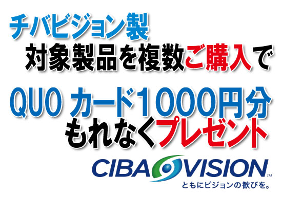 チバビジョン製対象製品を複数ご購入で必ずもらえる1,000円分のクオカードプレゼント!!